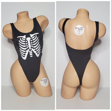 Black with White Ribcage Skeleton Design with Black Trim 1 Piece Bodysuit Size SMALL