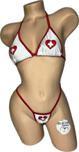 3PC Nurse outfit costume bikini set White W/Red Trim