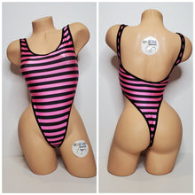 Baby pink and black horizontal stripes pattern on high quality lycra spandex material with black trim