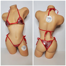 1) MICRO - Medium coverage front, some coverage scrunch butt style bottoms with side ties (pictured)