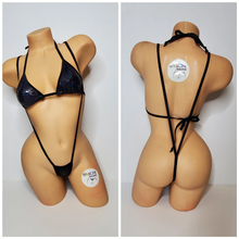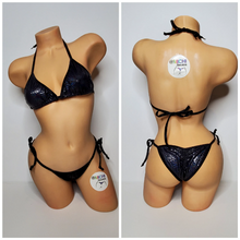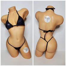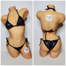Black Snake Skin Pattern w Black Trim  2 Piece Micro String Bikini Set One Size