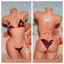 Neon Peach and Brown Camouflage w/ Neon Peach Trim 2 Piece Micro Bikini Set