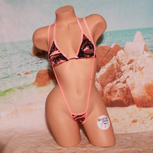 Neon peach and brown camouflage high quality spandex stretch fabric with neon peach elastic trim Medium Coverage adjustable top Medium Coverage front with Y back thong Slingshot style bottoms ***Please note pattern has VARIATIONS in the fabric and your bikini might not look EXACTLY like those pictured. I try my very best to make every single pattern bikini look stunning by selecting fabric pieces that complement each other. I've pictured multiple samples to show some of the variations.*** Short: 5’1″ or under Average: 5’2″ to 5’6″ Tall: 5’7″ or taller 3 sizes fit most. Please see my other listings for different coverage options. *** Please note that the size variations only changes the size of the hip/leg elastic band size, not the coverage size. *** Custom and personalized orders: If you don't see a coverage option or color combination that you are looking for in a particular style, send us a message! Please note that we do not make one-piece bathing suits or "traditional" style bikini bottoms. All of our bikinis are "micro" style (thong in the middle of the crotch area). The custom order option is available just in case there is a particular coverage or color combination missing from our listings. Sizing details: Bikini Tops: All of the bikini tops are fully adjustable and fit most body types. There are different listings for the different coverage options we have, which is not necessarily the same as your "size". Choose the coverage option that best suits you. For example: Someone with 36DD will be able to fit in a micro top, but it will show more skin. Bikini Bottoms: All of the STRING bikini bottoms are fully adjustable and fit most body types sizes XS - M (1 size). Please see additional coverage options in our other listings. For our non-string bikini bottoms, the size is determined by the length of the hip/leg straps. Circumferences = S: 24", M: 26", L: 28" All sizes have some stretch to them and so there is some give & take to these measurements. Dimensions of all coverage options: Tops: Micro top: 3.5" wide x 3" tall triangle Medium top: 5.5" wide x 6" tall triangle Full top: 6.5" wide x 6" tall curved triangle Bottoms: Medium coverage front (for both "medium coverage front" scrunch butt and y back thong style): 3" wide x 6" tall curved triangle Large coverage front (for "some" coverage scrunch butt and "full" coverage scrunch butt): 5.5" wide x 6" tall triangle "Some" coverage scrunch butt back: 5.5" wide x 6" tall triangle (scrunch detail makes it a bit smaller except when stretched) "Full" coverage scrunch butt back: 8' wide x 8" tall curved triangle (scrunch detail makes it a bit smaller except when stretched) Care instructions: Our bikinis are all hand-wash with care only. Do NOT iron or use bleach on any lycra garment. Order processing: Please allow 1-3 business days for order processing. Order processing time isn't the same as shipping time. The date your package will arrive depends on the shipping method you choose and your zip code once your order is processed. All shipments will originate from zip code 90706. You can visit the USPS website to calculate the best shipping method for your needs. If you're still not sure, please message us. Returns or Exchanges: We cannot offer returns or exchanges on intimate items purchases for health/hygiene reasons, which includes every item listed in our shop. Please read the entire item description and check other listings for more coverage options before placing your order.