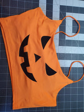 Bright orange crop top with black Jack O Lantern iron-on - size S