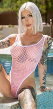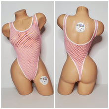 Baby Pink Large Hole Fishnet with White Trim ***VERY SHEER*** 1 Piece Bodysuit Size SMALL