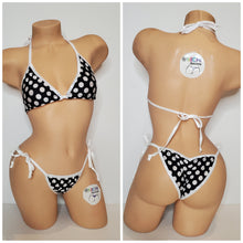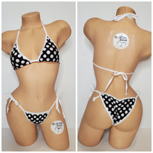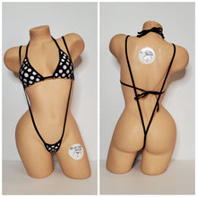 Black with white polka dots lycra fabric with your choice elastic trim color