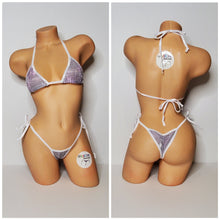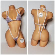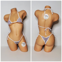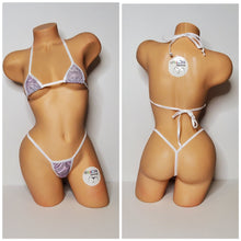 1) MICRO - Medium coverage front, some coverage scrunch butt style bottoms with side ties (pictured)