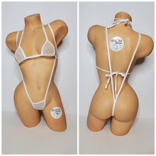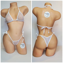 1) MICRO - Medium coverage front, some coverage scrunch butt style bottoms with side ties (pictured)