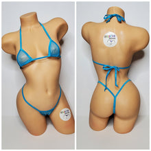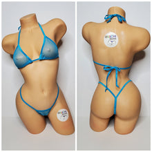 Bright blue mesh fabric ***very sheer*** with your choice elastic trim color:
