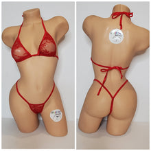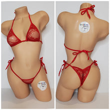 Red Lace *Semi Sheer* with Red Trim 2pc Micro Bikini Set One Size