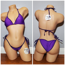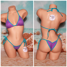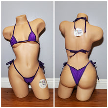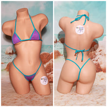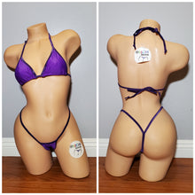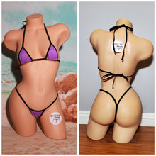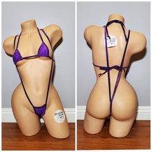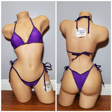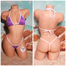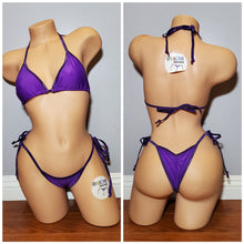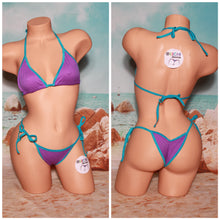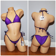 Choose from micro, medium or full coverage adjustable slide triangle top.Choose from Y back thong style (sizes XS-XL), slingshot thong style (short, average, tall), or scrunch butt style (micro, regular, or full) bottoms with side ties.