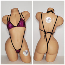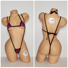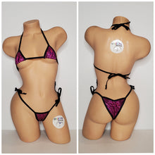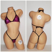 Magenta Snake Skin Pattern w Black Trim  2 Piece Micro String Bikini Set One Size