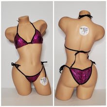 Magenta Snake Skin Pattern w Black Trim 2 Piece Micro String Bikini Set One Size