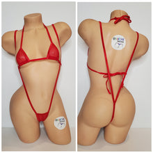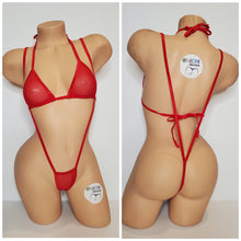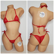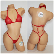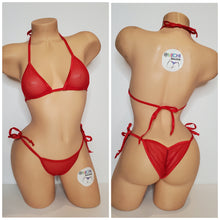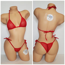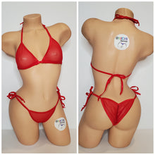 Red Mesh *Semi Sheer* with Red Trim 2pc Bikini Set One Size