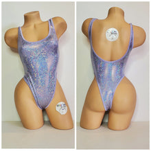 Shattered holographic periwinkle on high quality lycra spandex material with periwinkle trim