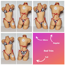 If you don't see a coverage option or color combination that you are looking for in a particular style, send us a message! Please note that we do not make one-piece bathing suits or "traditional" style bikini bottoms. All of our bikinis are "micro" style (thong in the middle of the crotch area). The custom order option is available just in case there is a particular coverage or color combination missing from our listings.