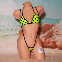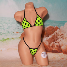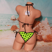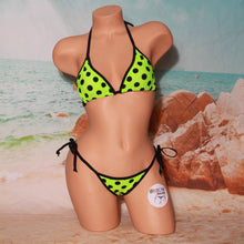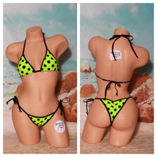 Neon green with black polka dots high quality spandex/lycra fabric with black elastic trim